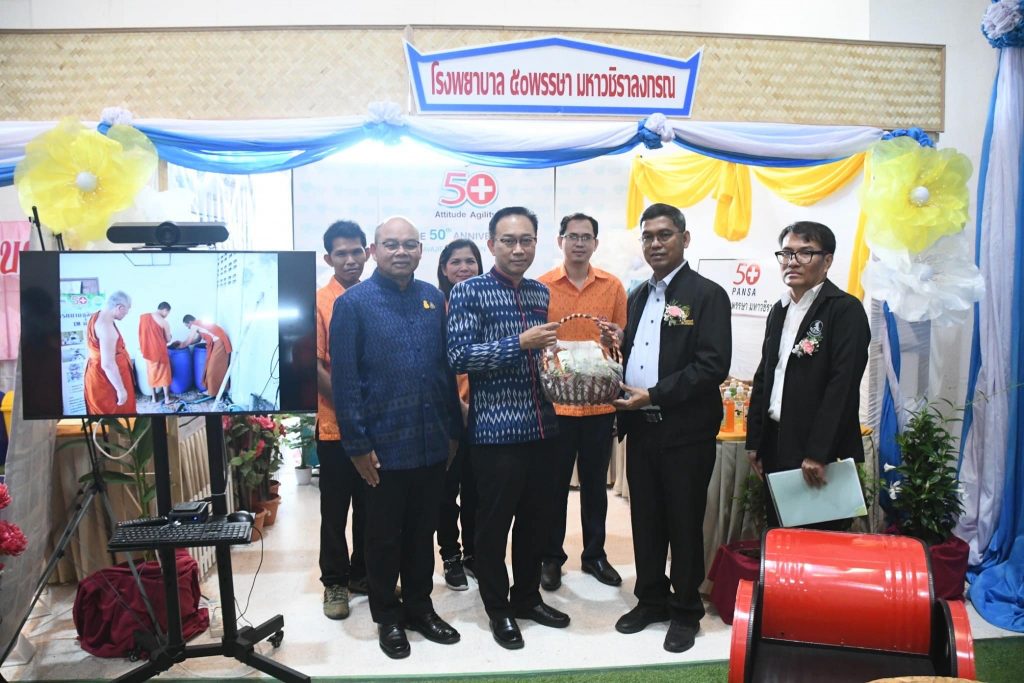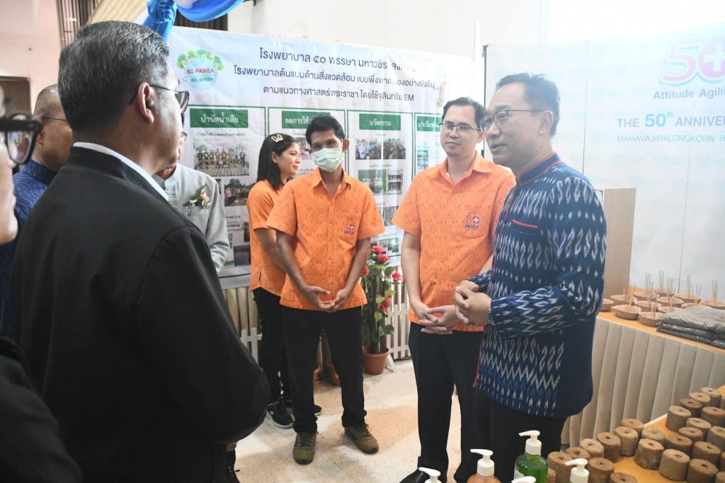 นายแพทย์กิตติศักดิ์ ฐานวิเศษ ผู้อำนวยการ โรงพยาบาล ๕๐ พรรษา มหาวชิราลงกรณพร้อมด้วยนายณัฐพงษ์ พิมพ์โคตร รักษาการรองผู้อำนวยการด้านอำนวยการ เข้าร่วมนำเสนอ และออกบูธ แสดงผลงานโรงพยาบาลต้นแบบด้านสิ่งแวดล้อมอย่างยั่งยืน ตามแนวทางศาสตร์พระราชา โดยใช้จุลินทรีย์ EM ในการตรวจประเมินการจัดขยะมูลฝอยชุมชน “จังหวัดสะอาด” ระดับประเทศ ประจำปี 2566 โดยนายสมเพชร สร้อยสระคู รองผู้ว่าราชการจังหวัดอุบลราชธานี ให้เกียรติเป็นประธาน ณ ศาลากลางจังหวัดอุบลราชธานี