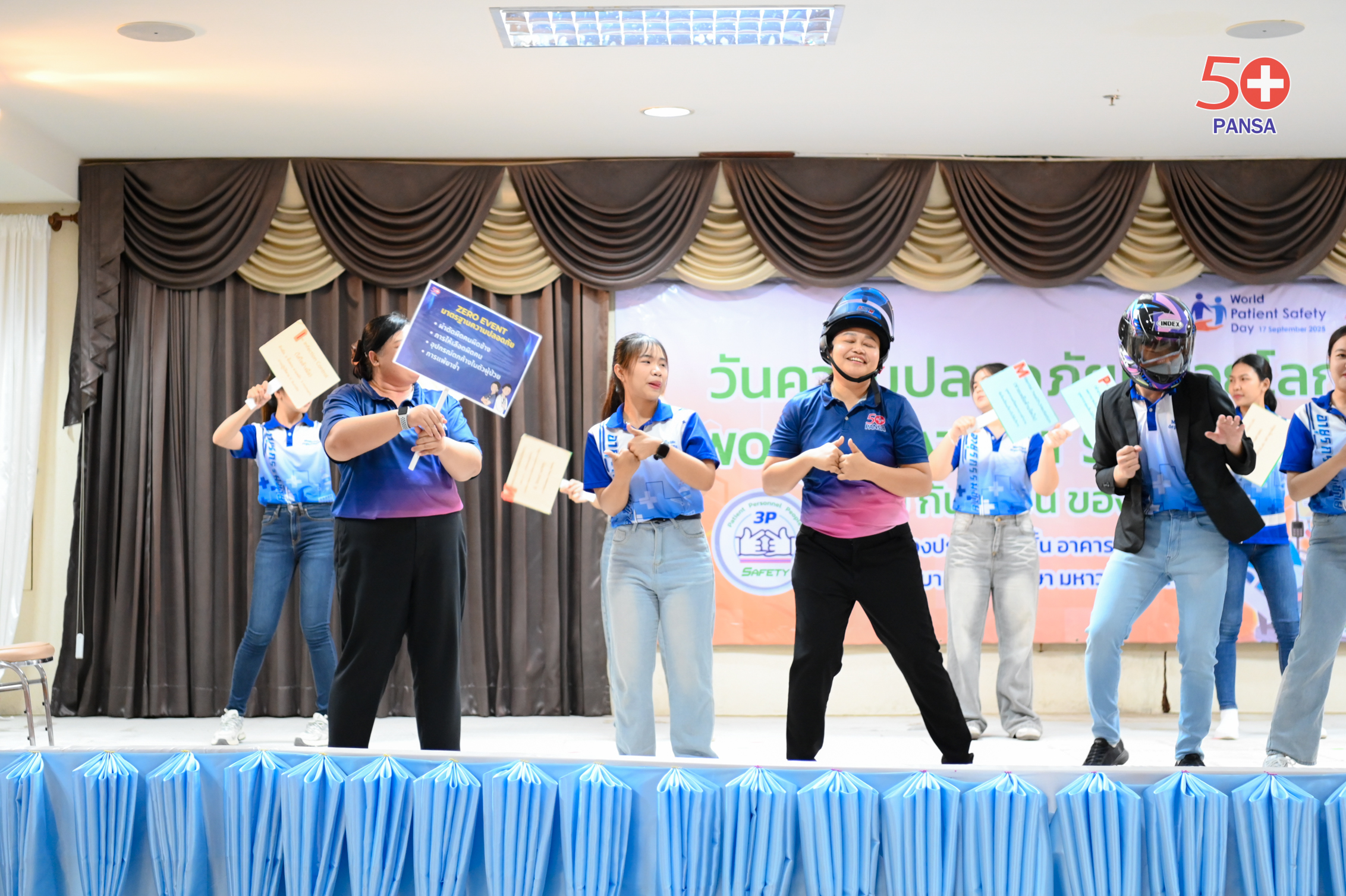 วันที่ 17 กันยายน 2568 โรงพยาบาล ๕๐ พรรษา มหาวชิราลงกรณ จัดกิจกรรม “วันแห่งความปลอดภัย” ประจำปี 2568 นายแพทย์ประพฤทธิ์ ธนกิจจารุ ผู้อำนวยการโรงพยาบาล มอบหมายนายแพทย์อภิรัก เกตุฉันท์ นายแพทย์ชำนาญการพิเศษ เป็นประธานในพิธีเปิดโครงการดังกล่าว