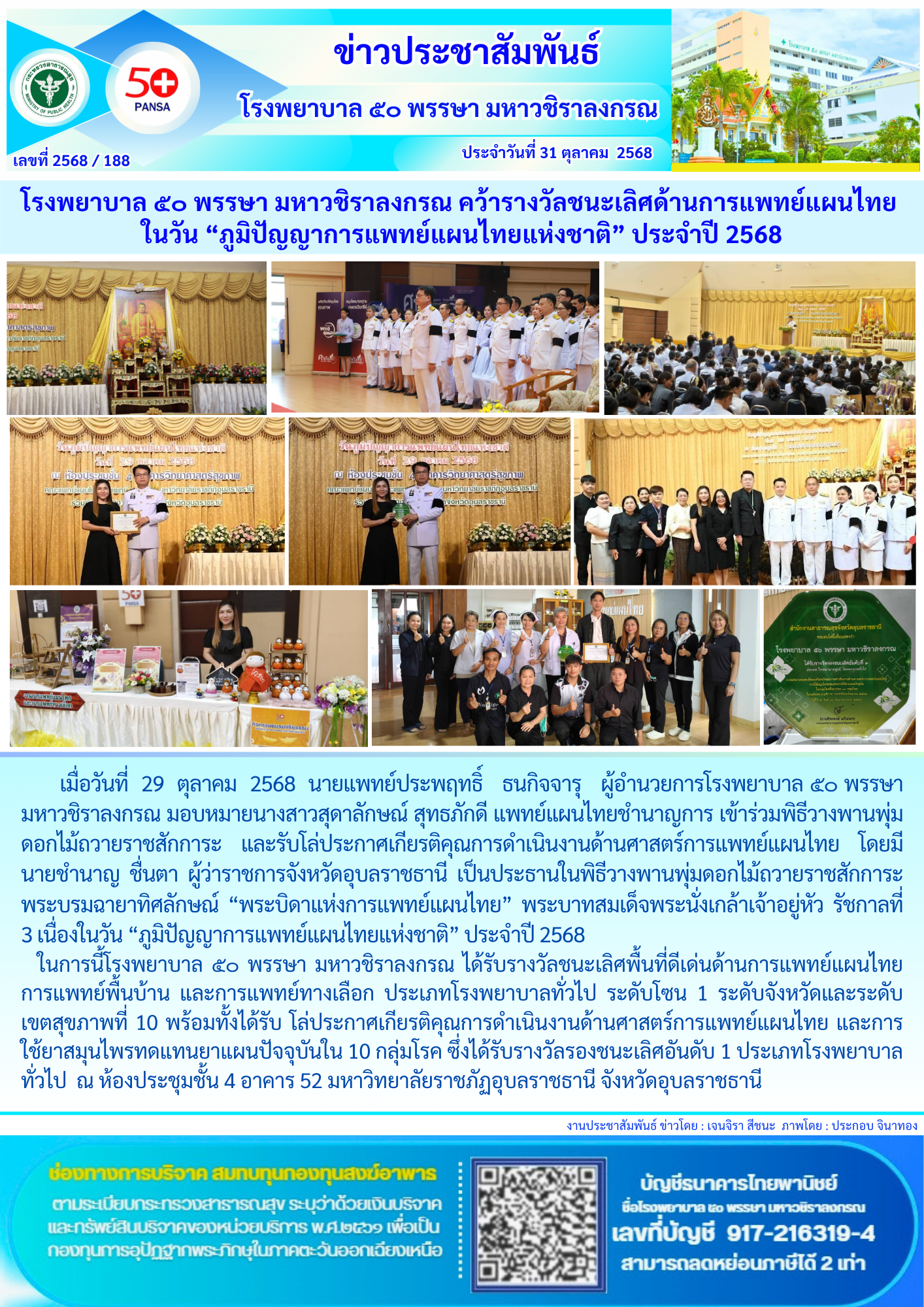วันที่ ๓๐ ตุลาคม ๒๕๖๘ นายแพทย์
