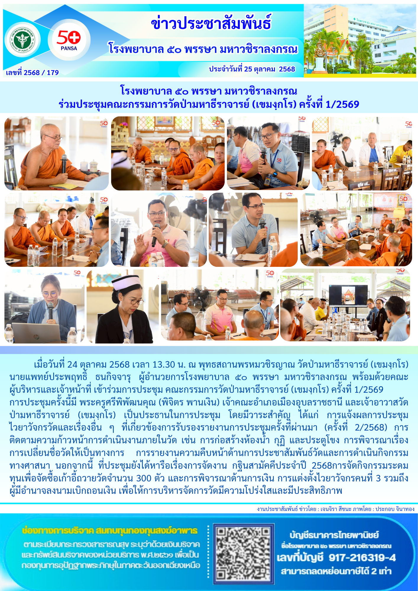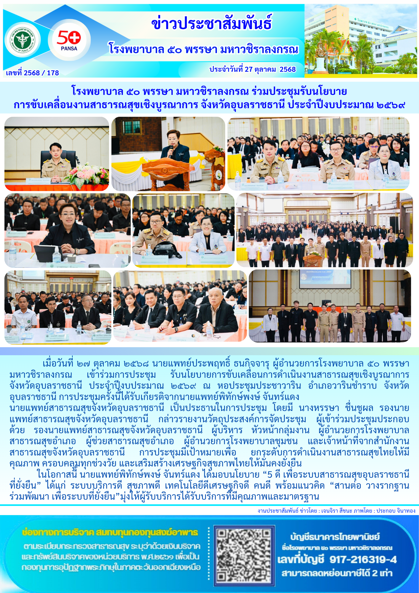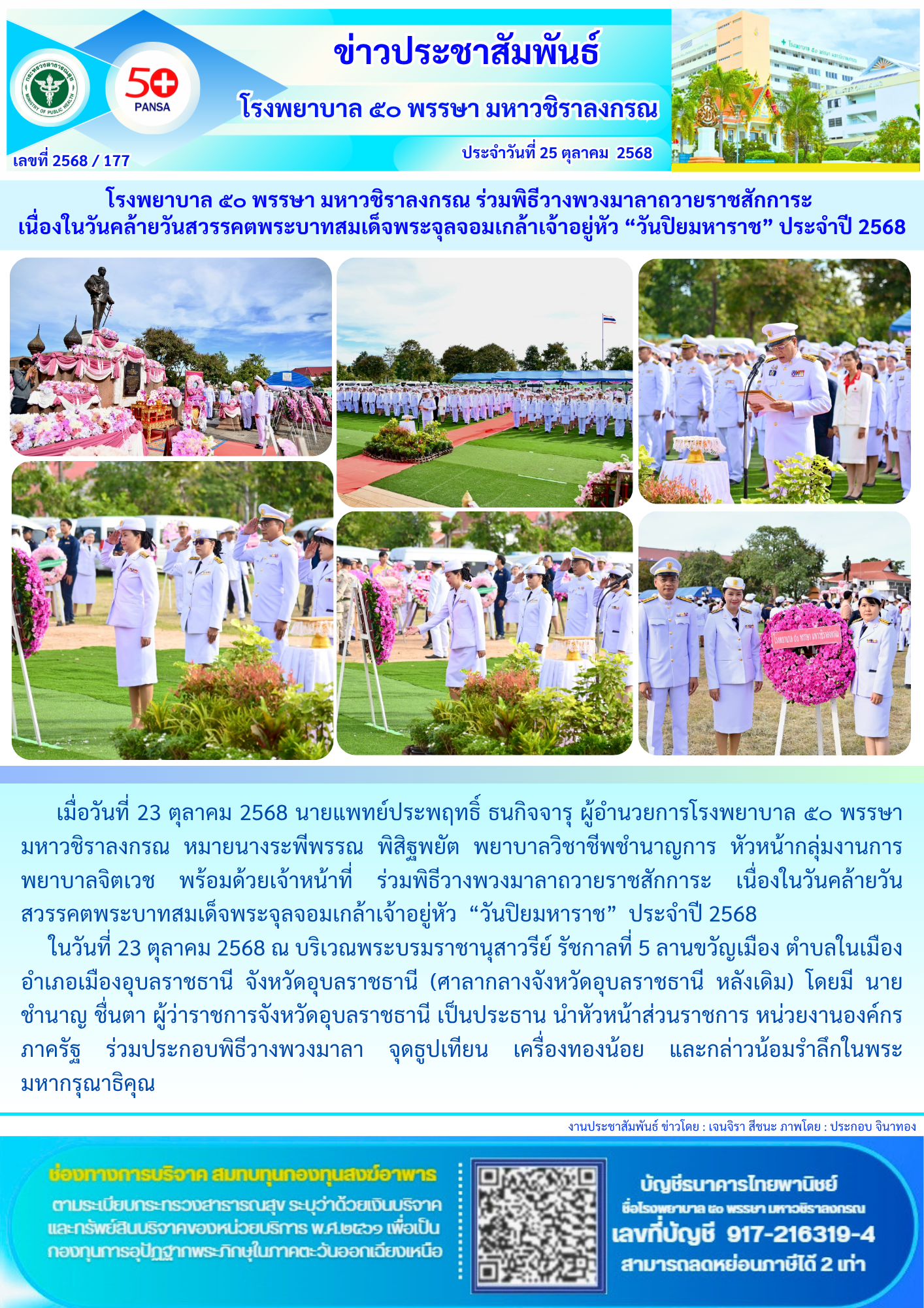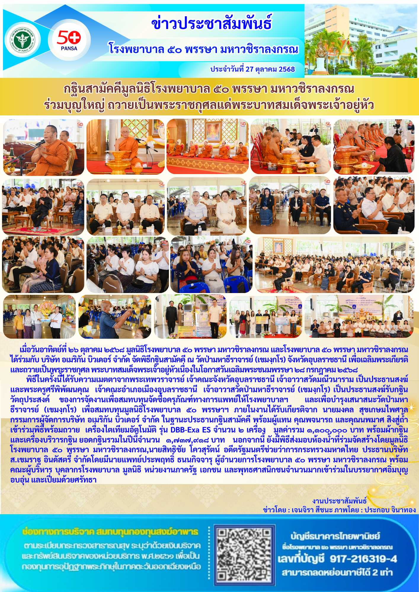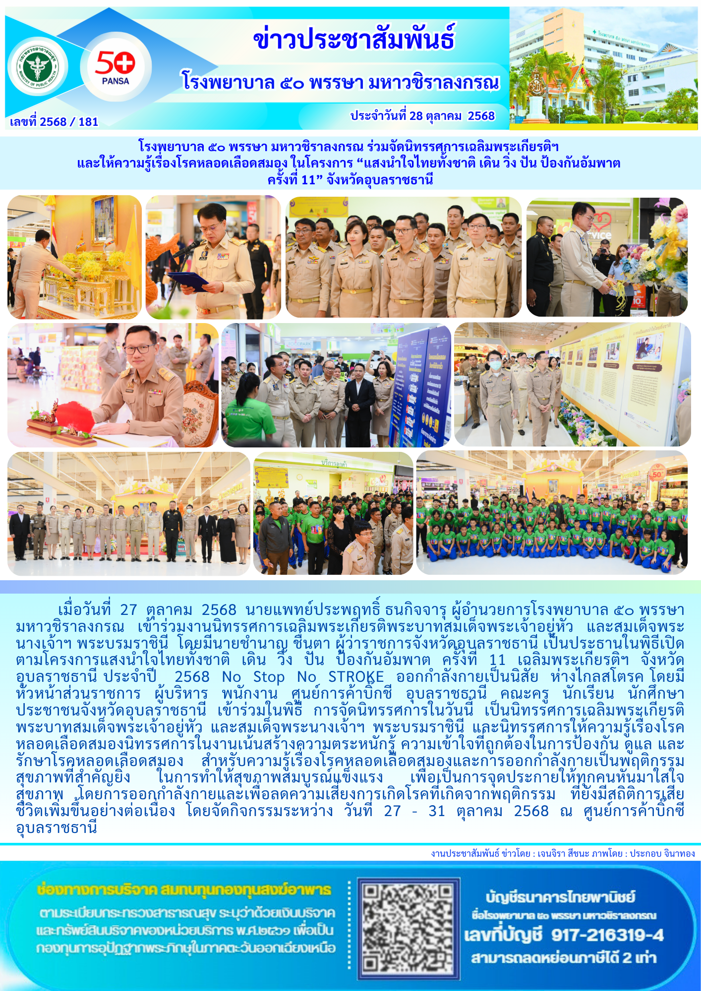 โรงพยาบาล ๕๐ พรรษา มหาวชิราลงกรณ รณรงค์วันโรคหลอดเลือดสมองโลก ๒๕๖๘ ภายใต้แนวคิด “ฮู้ไว้ บ่ฮู้ช้า” ส่งเสริมความรู้ ป้องกันโรคหลอดเลือดสมองในประชาชน