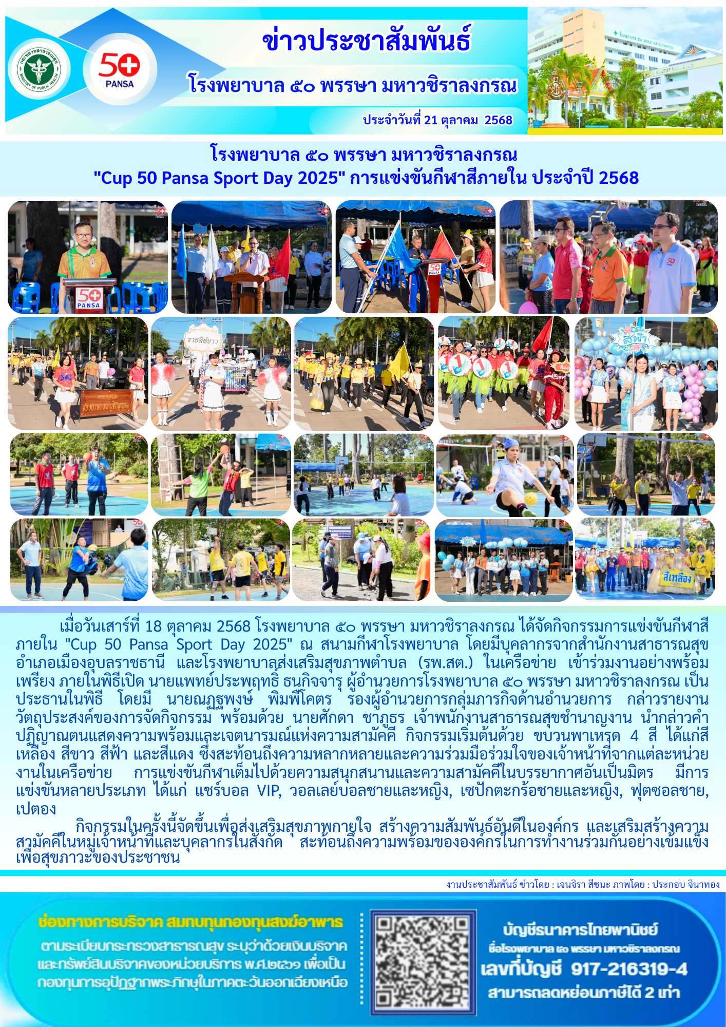 โรงพยาบาล ๕๐ พรรษา มหาวชิราลงกรณ “Cup 50 Pansa Sport Day 2025” การแข่งขันกีฬาสีภายใน ประจำปี 2568