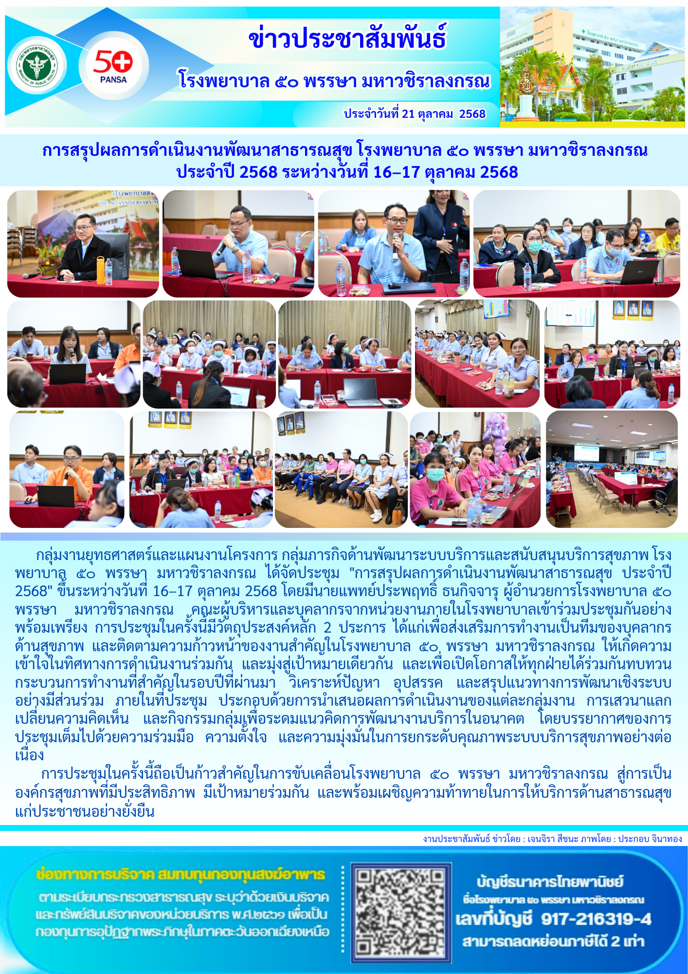 การสรุปผลการดำเนินงานพัฒนาสาธารณสุข โรงพยาบาล ๕๐ พรรษา มหาวชิราลงกรณ ประจำปี 2568 ระหว่างวันที่ 16–17 ตุลาคม 2568