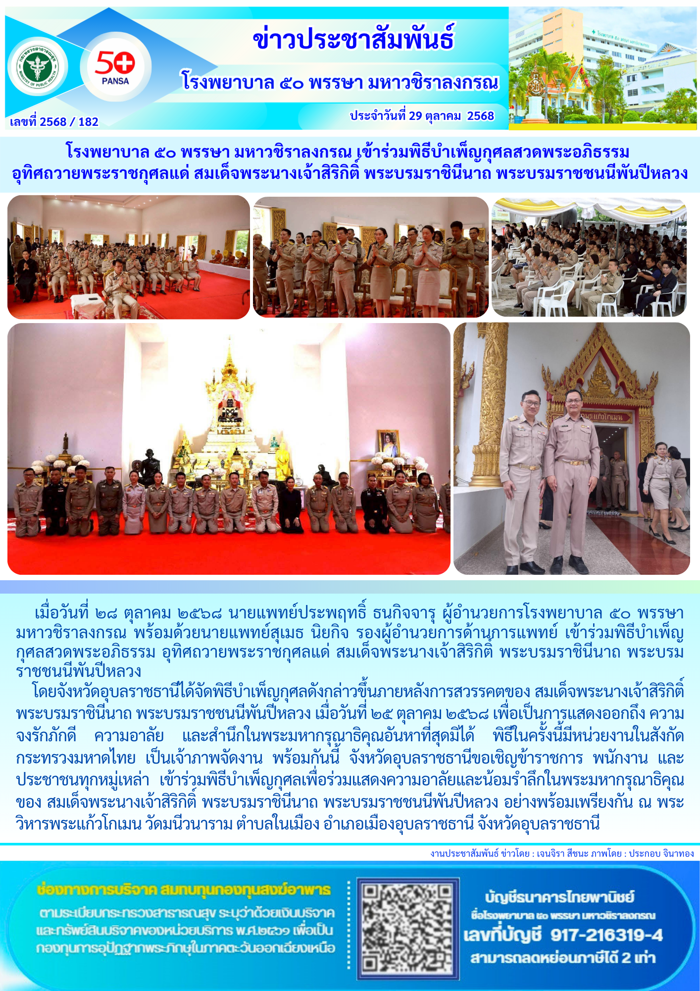 วันที่ ๓๐ ตุลาคม ๒๕๖๘ นายแพทย์