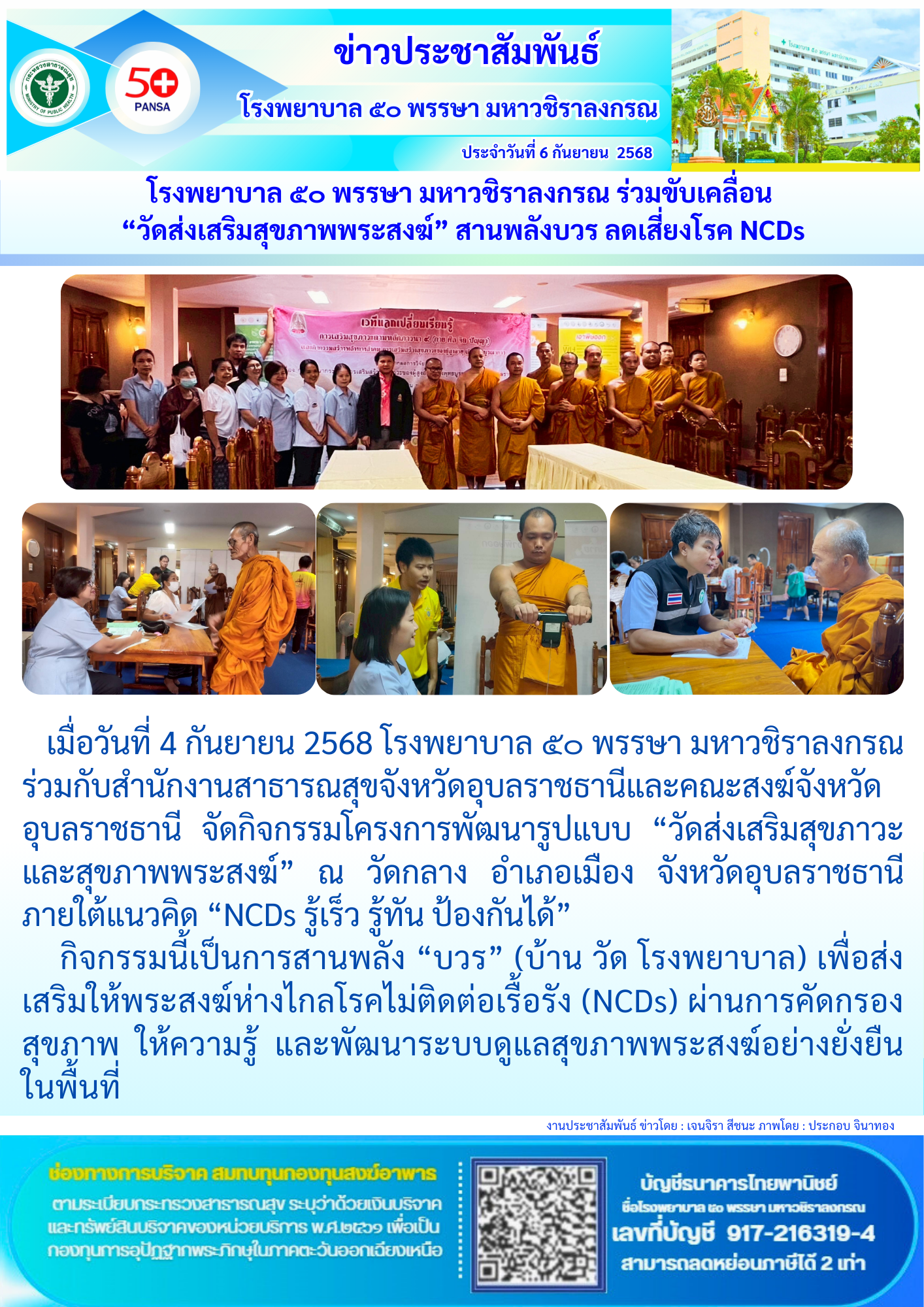 อ่านต่อโรงพยาบาล ๕๐ พรรษา มหาวชิราลงกรณ จัดโครงการ “มหกรรมคุณภาพ 2568”
