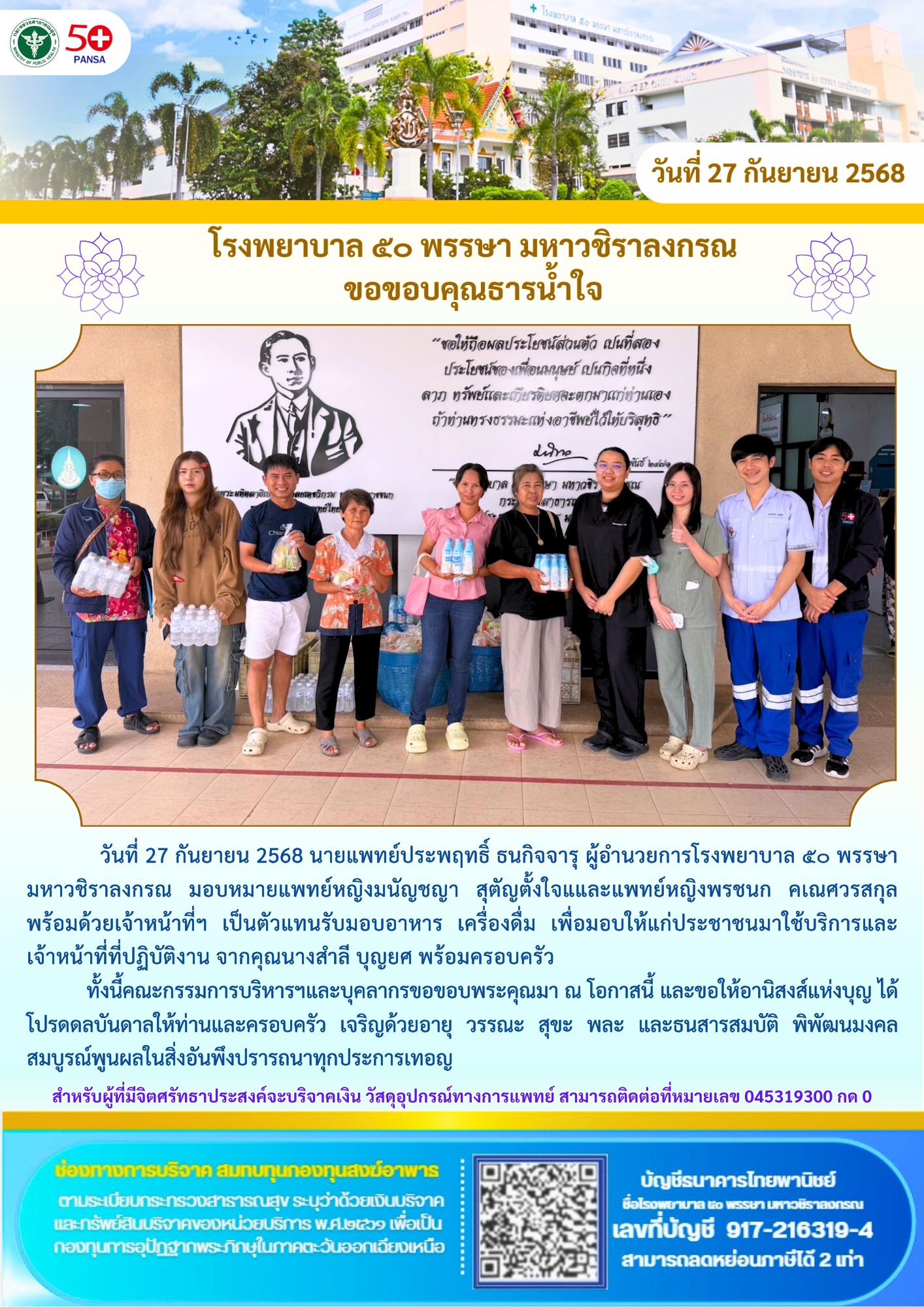 อ่านต่อโรงพยาบาล ๕๐ พรรษา มหาวชิราลงกรณ รับมอบเงินบริจาค 180,000.-บาท